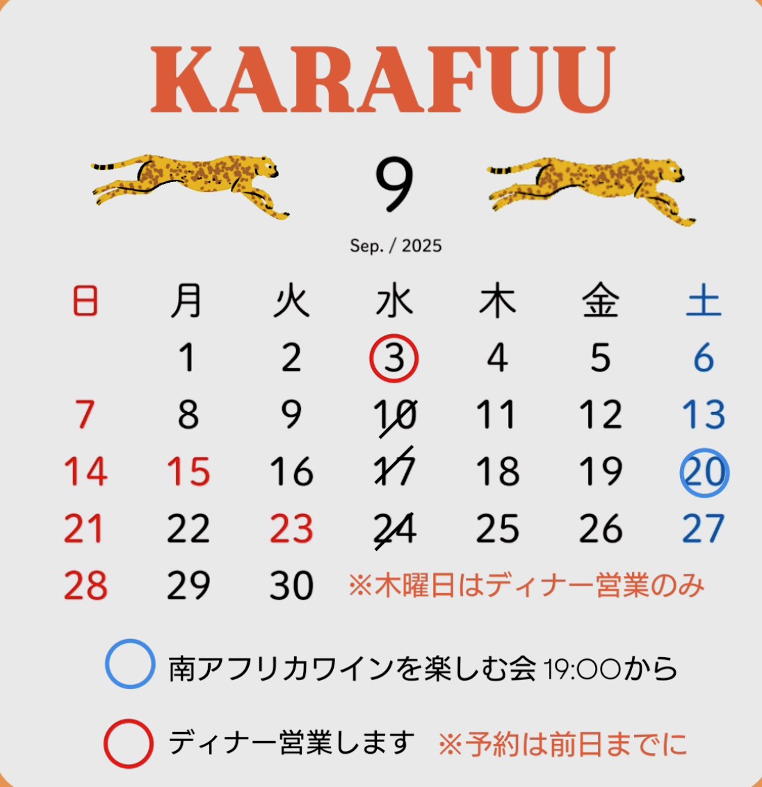 9月も臨時休業ございます